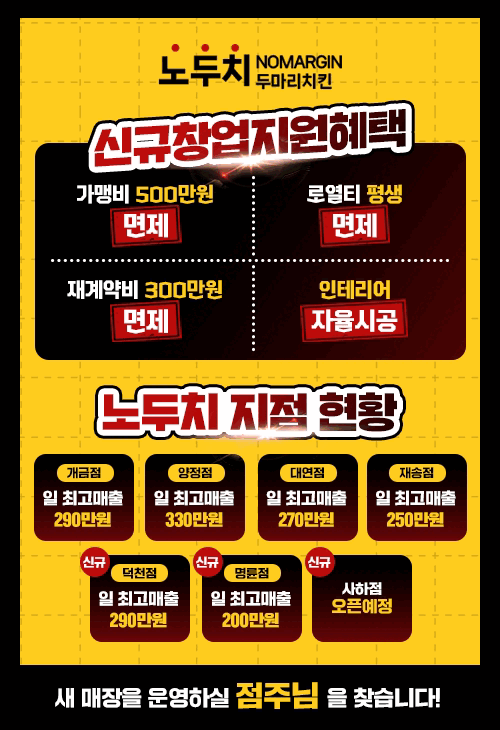 노두치는 타사대비 15% 이상 원가율을 낮춰 점주님들에게 더 높은 마진율을 보장하겠습니다.